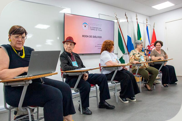 "Além dos aspectos afetivos, tivemos também a oportunidade de ouvir colegas falando sobre temas muito importantes para todos: a hiper conexão e seu impacto sobre as relações. Discutir sobre a IA e a psicoterapia, ouvir sobre a Adolescência e todos os desafios presentes nesta fase da vida, conversar sobre Ética no encontro humano.